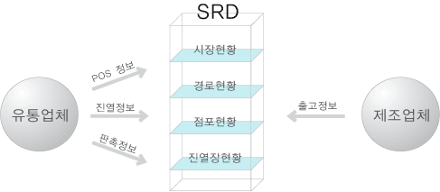 • 통합/표준 매대 구성을 필요로 하는 유통업체로부터 POS 데이터와 진열 데이터를 제공받아 분류, 속성, 브랜드, 제조사, 상품들의 진열 및 판매의 시장에서의 흐름과 경로별 흐름을 파악한다.